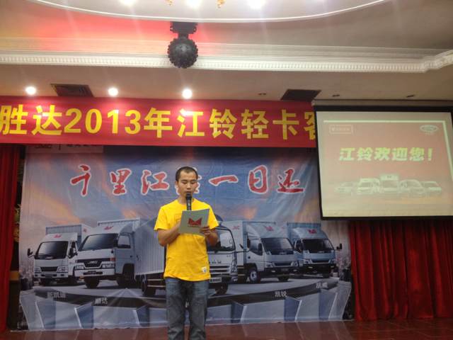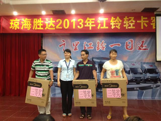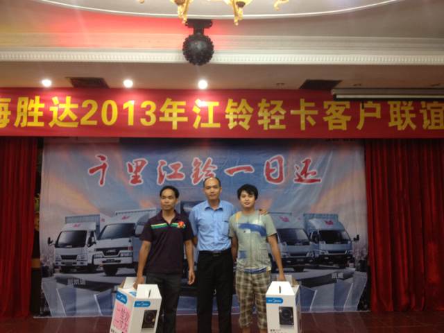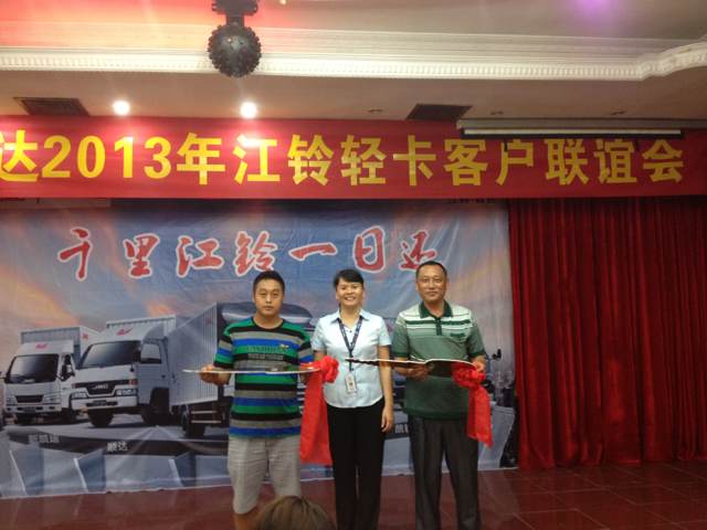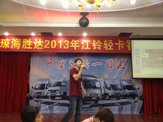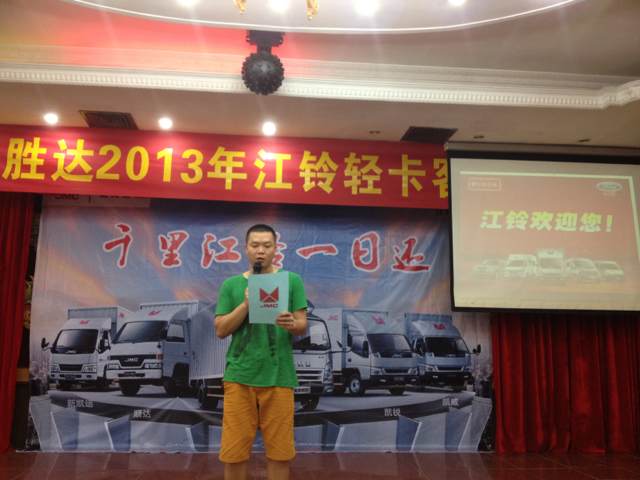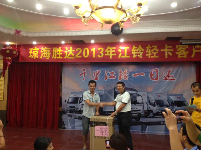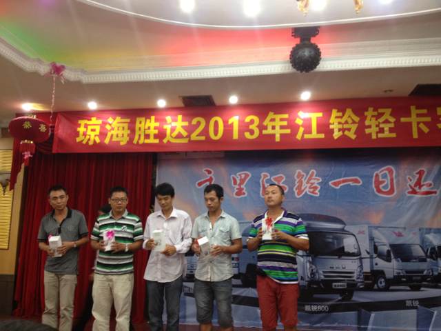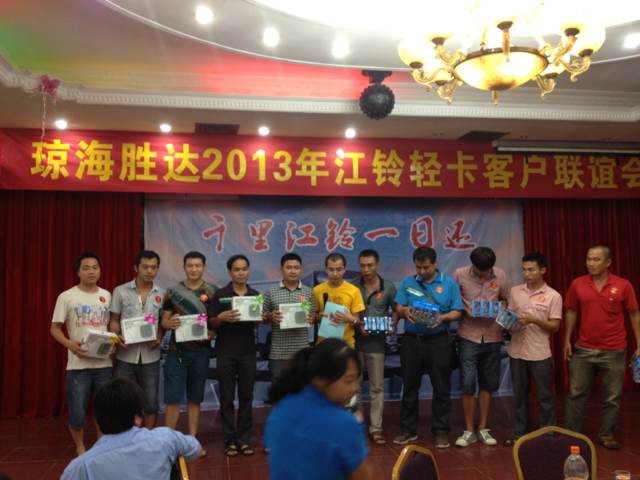 2013年9月7日晚7時(shí),瓊海勝達(dá)2013年江鈴輕卡客戶聯(lián)誼會(huì)在良昌美食城召開(kāi),此次聯(lián)誼會(huì)邀請(qǐng)到江鈴輕卡的新老客戶前來(lái)參加,勝達(dá)汽車(chē)由衷感謝各位新老客戶一直以來(lái)的支持與厚愛(ài),在新的一年里,我們將會(huì)以更好的服務(wù)回饋各位客戶。